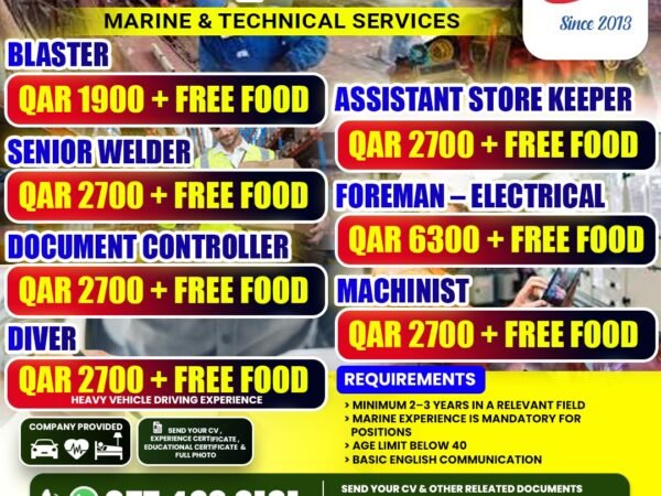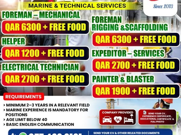 Vacancy in Qatar – Mechanical / Technical Supervisor