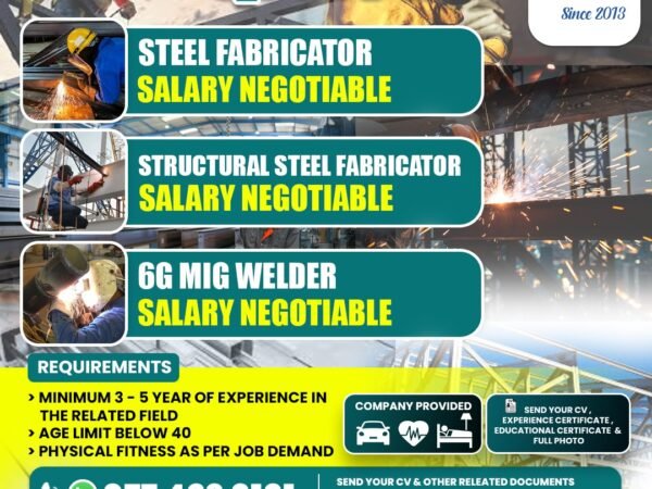 Vacancies in Qatar – Steel Fabricator & Structural Steel Fabricator & 6G MIG Welder